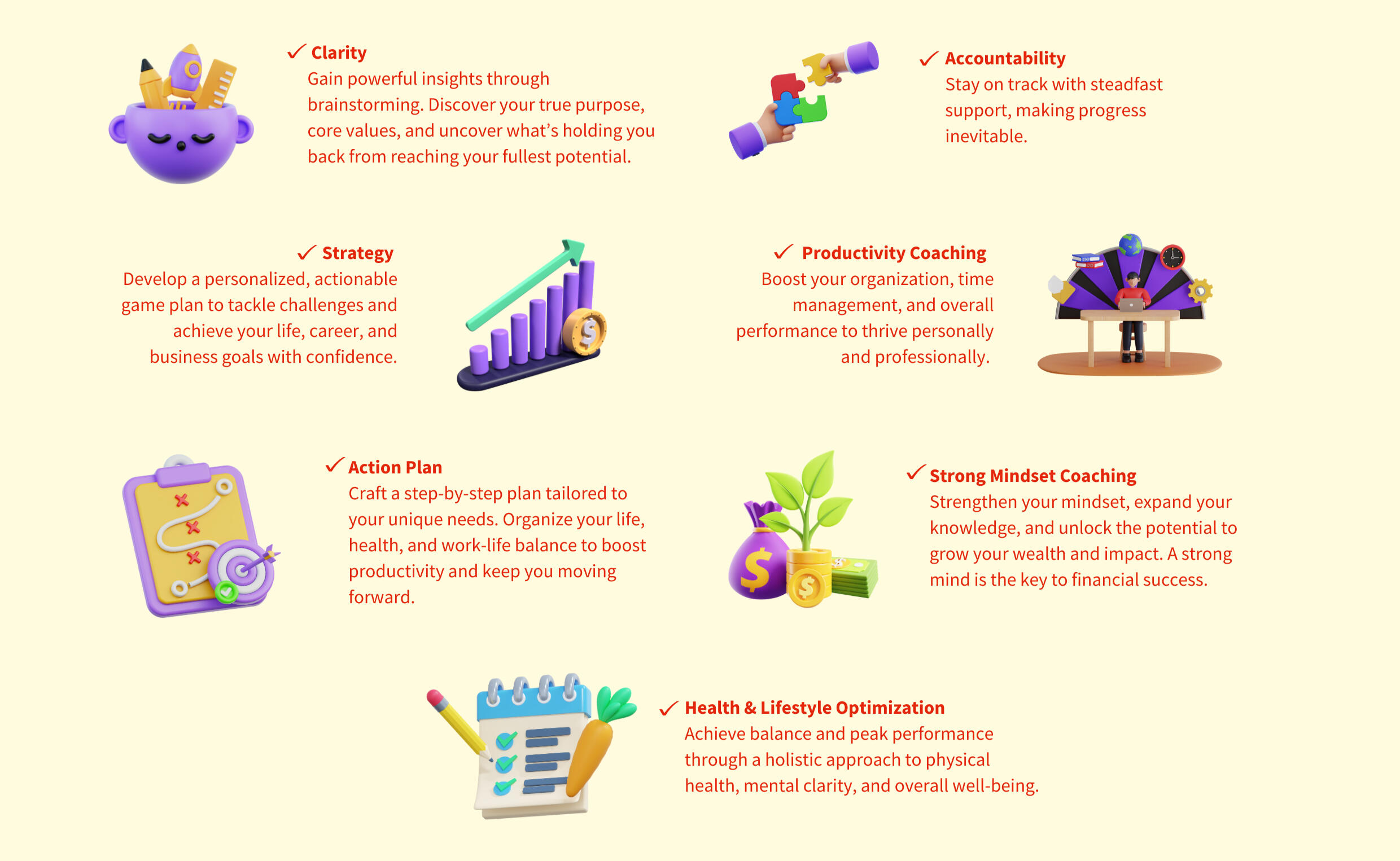 Build resilience, enhance emotional well-being, and navigate life’s challenges with ease.ACCOUNTABILITY & GOAL SETTING