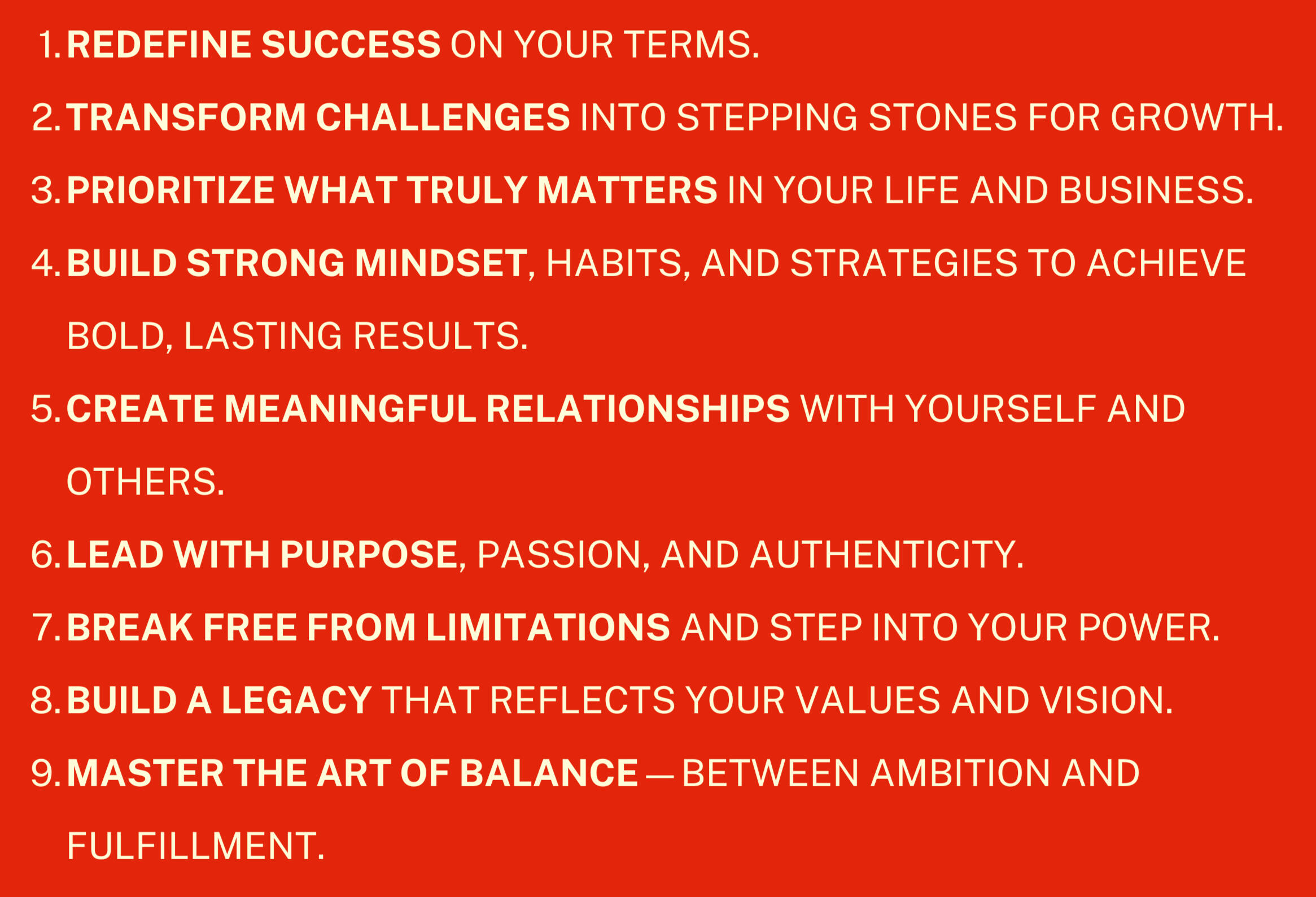 I’m here on a mission to spark a movement of unstoppable transformation—empowering bold, action-driven individuals to design a life they absolutely love. I’m all about igniting passion and the right energy, uncovering purpose, and turning dreams into a reality that inspires not just you, but everyone around you and your presence to rise higher and dream bigger.